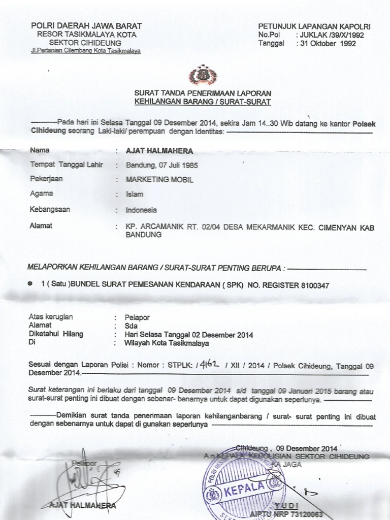 | Judul: Contoh Surat Kehilangan Dari Kepolisian Dan Cara Membuatnya |